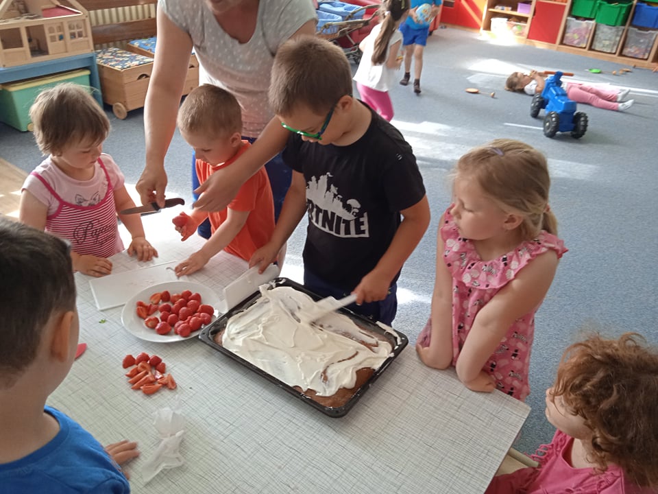 Den dětí je sice jen 1. června, ale my jsme slavili celý týden. Děti procvičily své dovednosti a změřily síly v různých soutěžích, upekly si sladké odměny – dort a perník, které ozdobily šlehačkou a jahodami. Třídy si navzájem připravily stopovanou za pokladem. Cestou k pokladu děti plnily těžší i lehčí úkoly. Nalezený poklad s nadšením odnesly do školky. Celý týden jsme si báječně užili, přálo nám také počasí a děti si mohly konečně pohrát na školní zahradě.