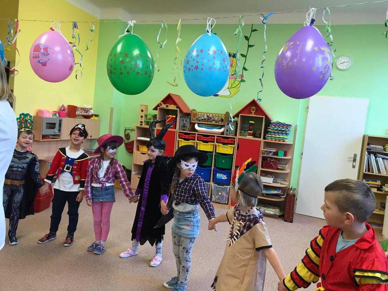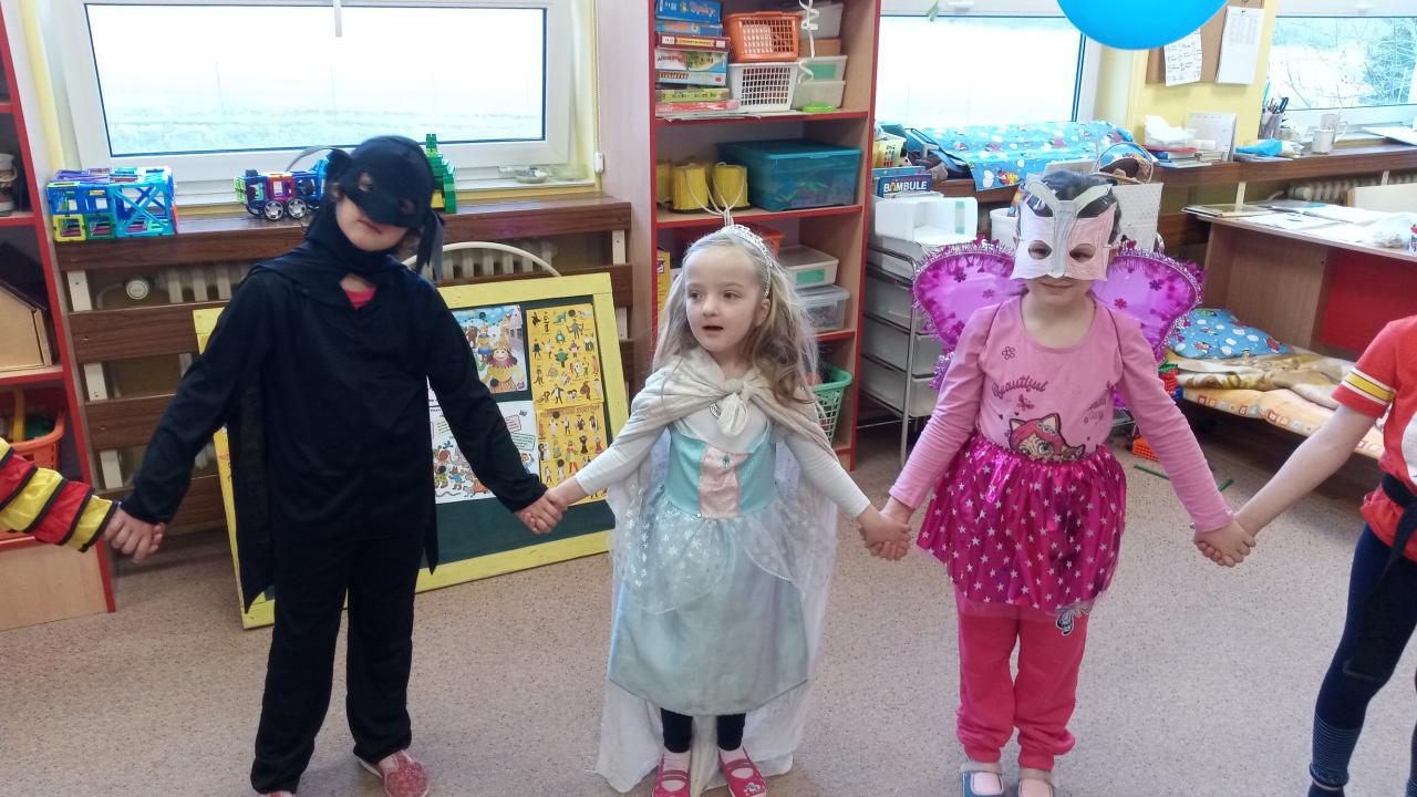 Ve čtvrtek jsme měli ve školce maškarní bál. Třídu jsme měli od pondělí pěkně vyzdobenou, děti přišly v krásných maskách (uvidíte na fotografiích), zatancovali jsme si, zasoutěžili.