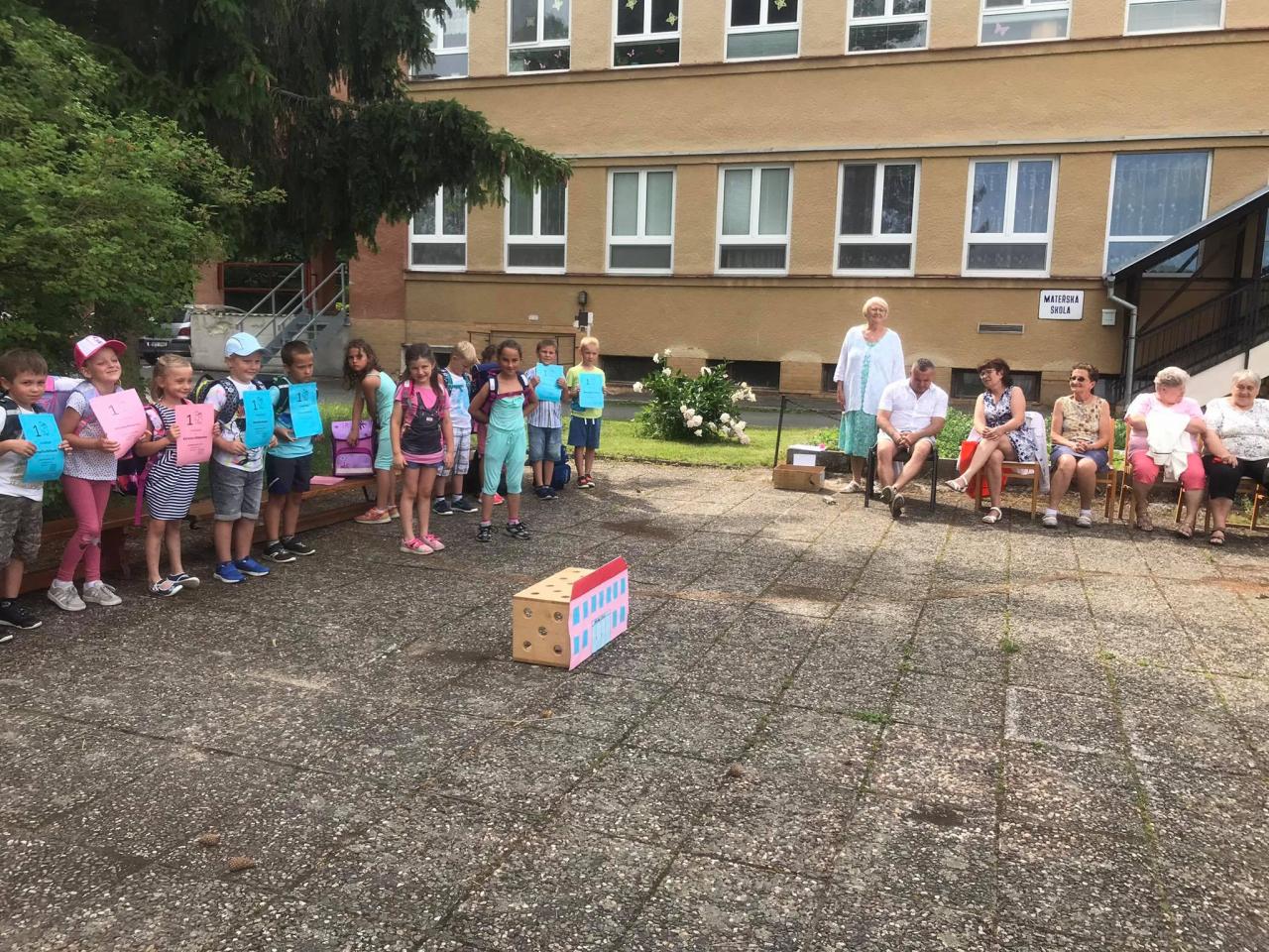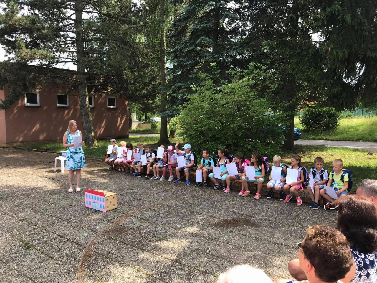 Když nastala slavnostní chvíle, paní učitelka pasovala děti na školáky a vyřadila je z mateřské školky. Děti povídaly, na co se o školy nejvíc těší, na co budou ze školky vzpomínat. Do školy se děti těší na tělocvik, na známky, na čtení, na vyrábění, na malování. Některé děti prý budou vzpomínat i na školku.
