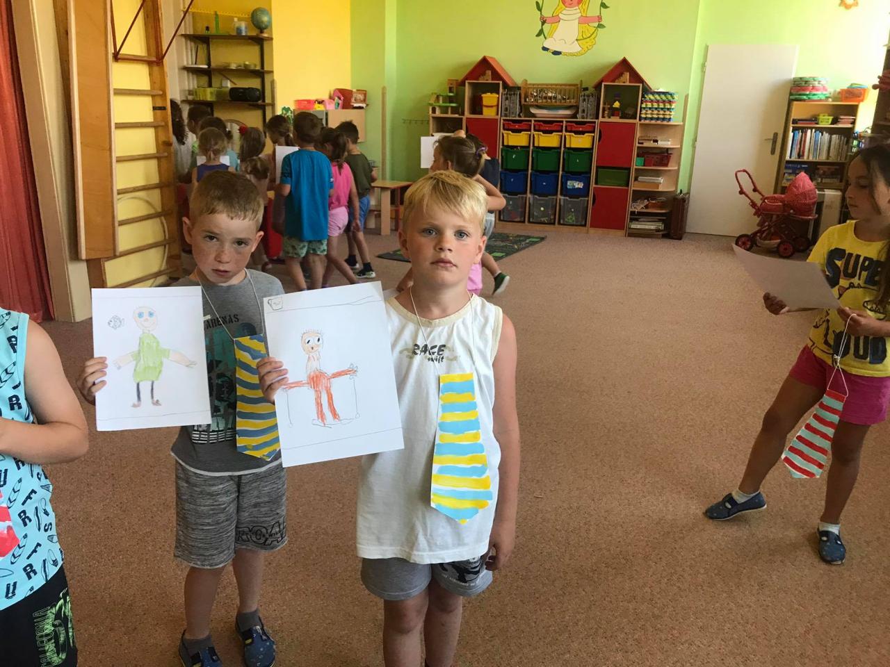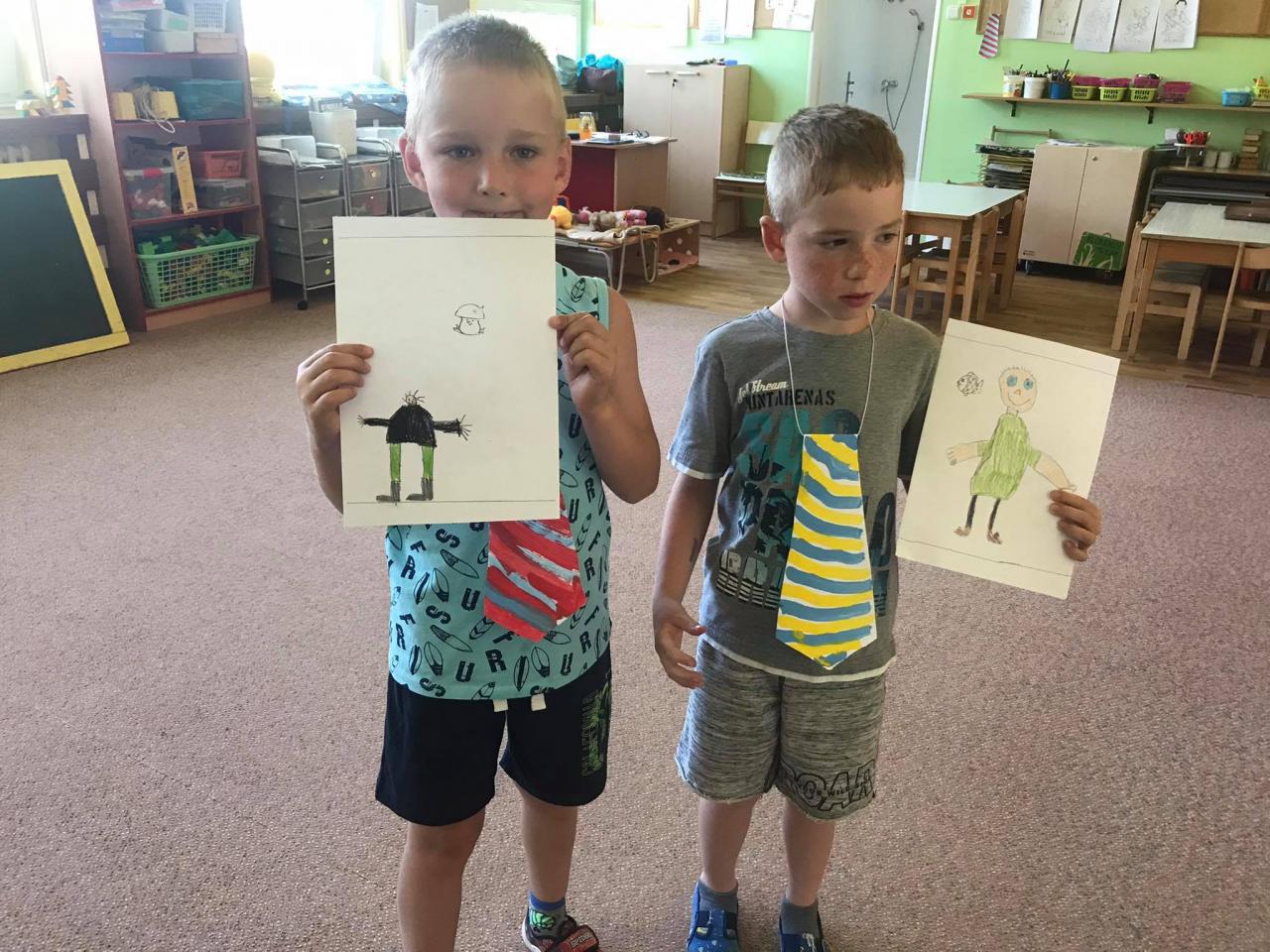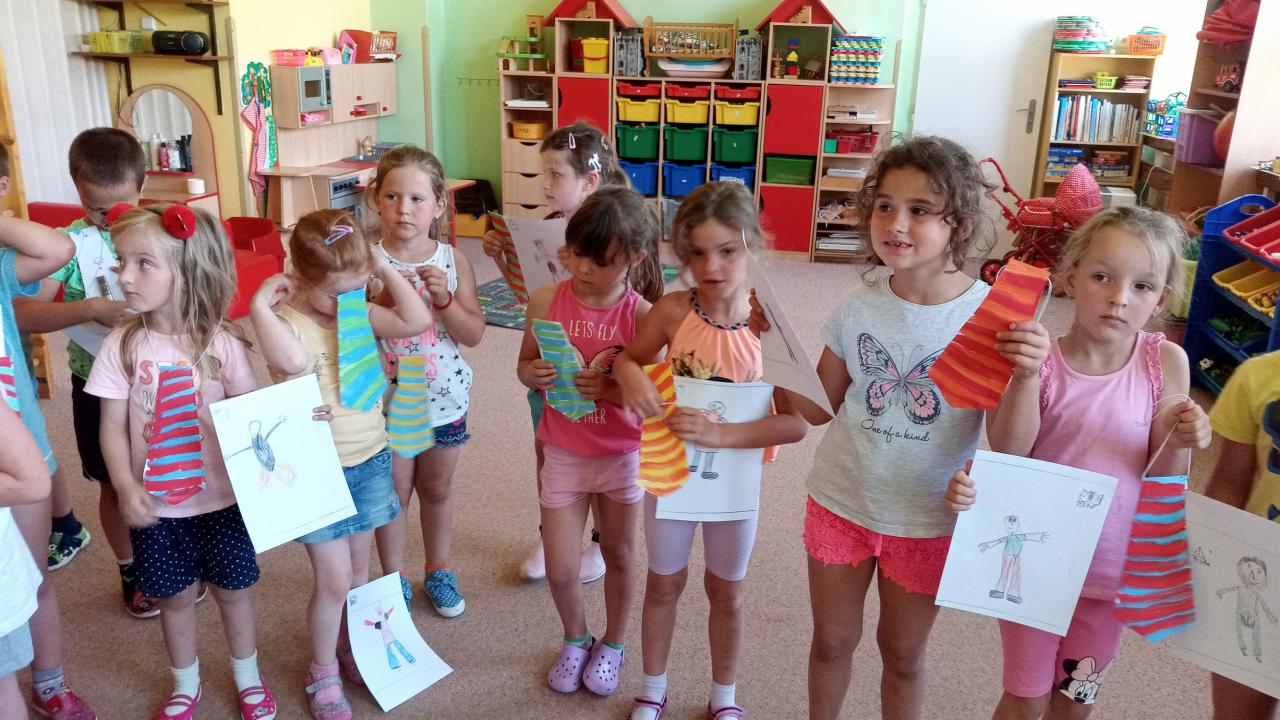 Maminkám děti vyrobily k svátku dárek, ale ani na tatínky jsme nezapomněli. K jejich svátku, který je v neděli 21. 6., každý svému tatínkovi vystřihl kravatu, kterou ozdobil barevnými proužky a doplnil malým překvapením. Svému tatínkovi děti také nakreslily jeho obrázek.