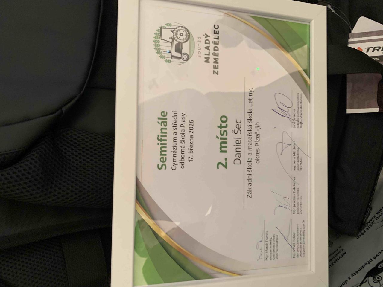 Naše škola se soutěže zúčastnila již potřetí a to s velkým úspěchem. Dva nejlepší z každého semifinále postupují do celostátního finále na Mendelově univerzitě v Brně, kam vyrazí i se svým natočeným medailonkem v červnu. Naši školu bude reprezentovat žák 8. třídy Daniel Šec, který si vybojoval krásné 2. místo se stejným počtem bodů jako jeho soupeř na 1. místě. Ale bohužel rozhodl čas odevzdání teoretického testu. Danielovi moc gratulujeme a držíme mu palce ve finále v Brně.