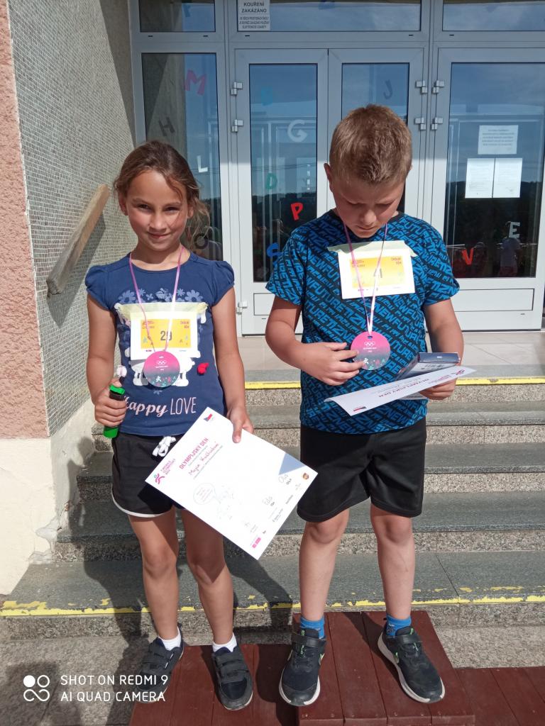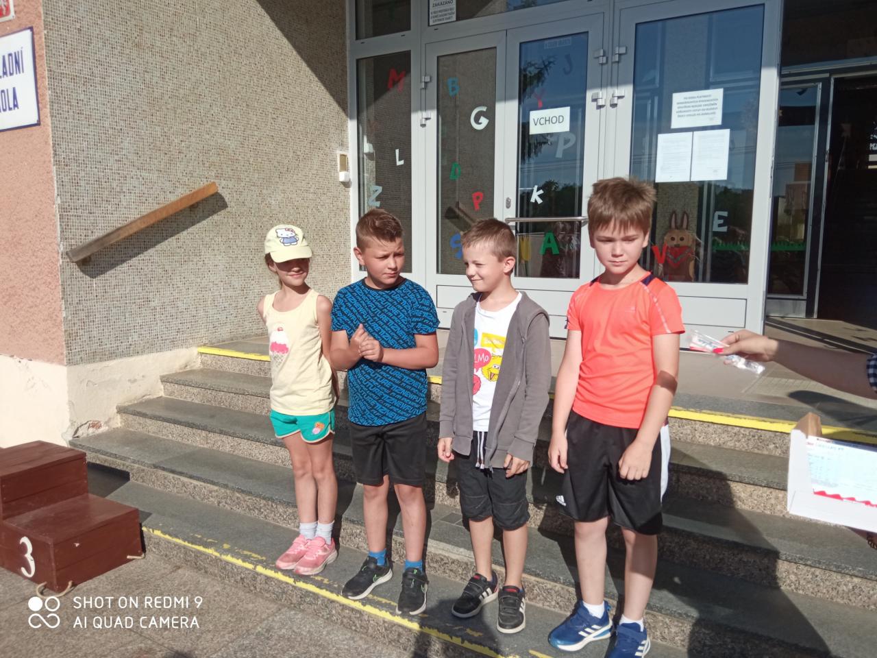 Účast na T-Mobile Olympijskému běhu se u nás ve škole již stala tradicí. V letošním školním roce se tato akce uskutečnila 22. června. Úplně poprvé se běhu zúčastnili i naši nejmenší z mateřské školy. Natěšení nastoupili na startovní čáru a vytyčenou trasu doběhli úplně všichni. V cíli na ně čekala sladká odměna, medaile a diplom, který si ve školce pak domalovali. Po nich vyběhli na trať žáci z 1. – 5. ročníku. Jako poslední přišli na řadu žáci 2. stupně. K příjemně strávenému dopoledni přispělo i krásné počasí. Každý nemůže být vynikající běžec, ale je potěšitelné, že se nikdo nenechal zahanbit a do cíle se dle svých sil snažil doběhnout nebo dojít. Za snahu všichni závodníci dostali medaili, diplom, cereální tyčinku a první tři z každého ročníku i malou pozornost. Trať měřila 500 m pro mladší a 1000 m pro starší děti. Dopoledne uteklo jako voda a my se rozcházeli s dobrým pocitem, že jsme udělali něco pro své zdraví a ještě společně podpořili olympijskou myšlenku.